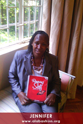 I was introduced to Alabastron by two Alumni who were younger ladies than I was, we would meet on Sunday at church. They looked at me and said, “You are not the Jennifer we used to know.” They had known me years back. I had gone to further my study in Europe and came back to resourcefully give back to my beloved country but my education wasn’t materializing into a job as I had hoped. Devastated as I was, I also lost my property – I lost all I ever had. All the broken expectations and personal loss left me severely depressed.
