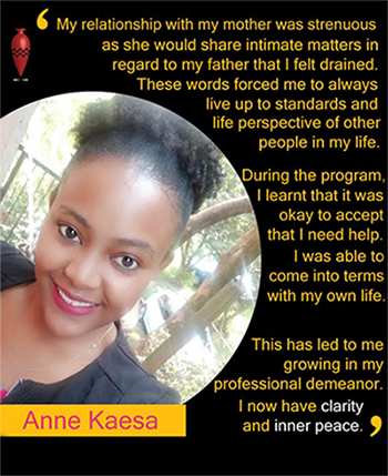 I leant about Alabastron from my internship. It did not make sense for me because I thought it was for women with issues. I thought that my issues were minor. Through the program, I began opening up as the process you get to meet with the deepest self of your entire existence. This sharing gave me a sense of calm and I would feel safe.